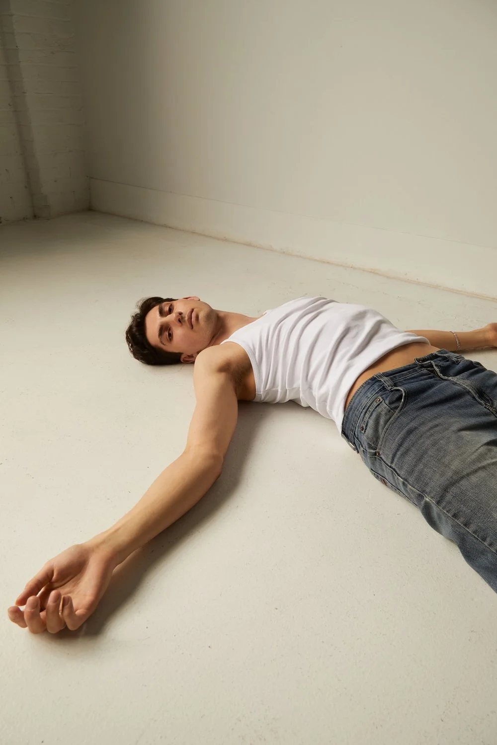 Each shot is crafted to evoke a sense of intimacy and quiet strength. Sam’s relaxed yet purposeful poses bring out the garments' design and fit, with each image focusing on elements like fabric movement, natural posture, and a sense of grounded confidence. Working in Toronto’s Jupiter Hills studio offered the ideal minimalist setting, drawing the viewer's attention directly to the model and clothing without distraction.